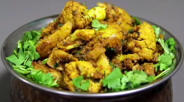 “Aloo Gobhi”(Potatoes & Cauliflower) cooked with onions, tomatoes & freshly ground spices.