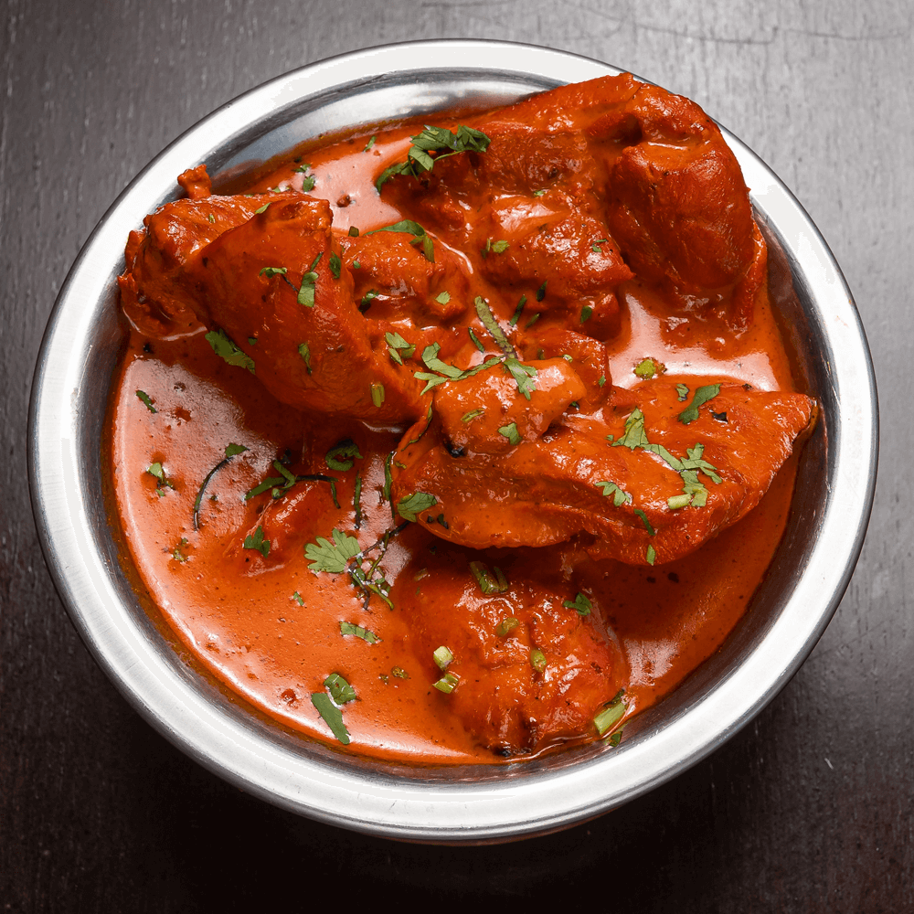 Boneless chicken fillets marinated overnight, cooked in a clay oven (tandoor) and then finished with tomato-flavored creamy sauce.