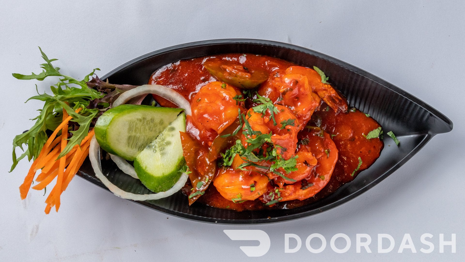 King prawns marinated, stir-fried with the combination of vegetables and traditional sauces.