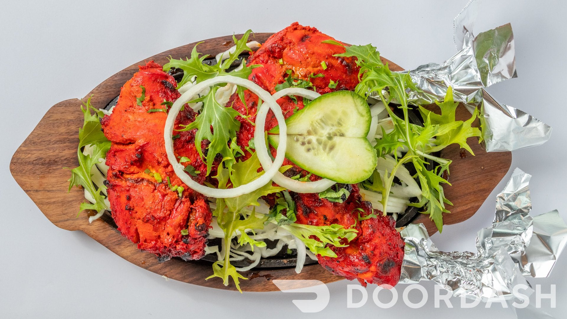 Chicken marinated overnight in yogurt, herbs & spices, cooked over a slow fire in clay oven (tandoor)